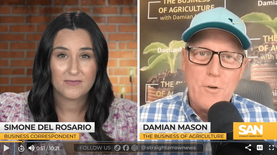 News & Media Damian Mason on Straight Arrow News: Soybeans are having an incredible year. That’s bad for prices. Damian Mason on Straight Arrow News: Just as inflation cools, bird flu is driving up the price of eggs Damian Quoted In Forbes Read Article (5 minute read) → ‘Eggflation’ gives producers record profits while internet mocks outrageous prices Why high food prices will persist even when inflation eases elsewhere How the climate crisis is causing food shortages globally Damian joins Eagle Country 95.9 to discuss his upcoming event with Bison Ag Supply And Service Global fertilizer shortage prompts farmers to consider more sustainable practices Damian Mason discussing wheat and inflation of food prices on NewsMaxTV